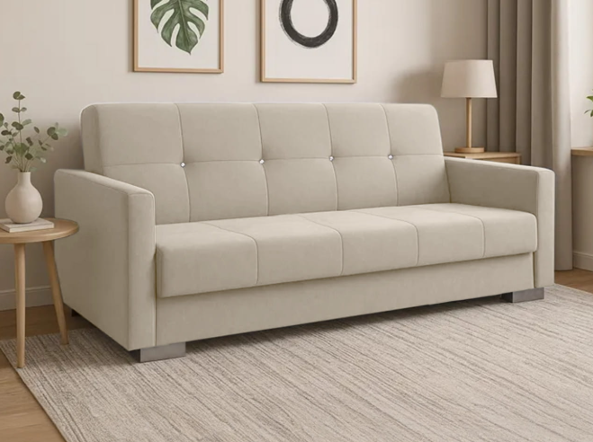 Alvó funkcióval és ágyneműtartóval rendelkezik
